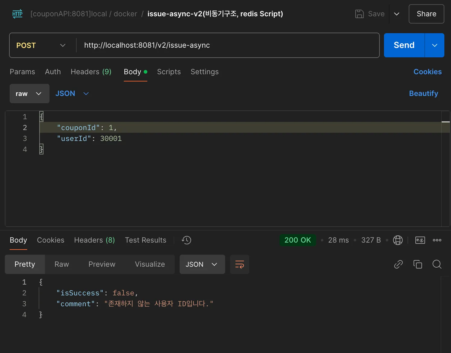 AsyncCouponIssueServiceV2.java | 사용자 존재 여부를 검증하고 쿠폰 발급 요청을 처리 |