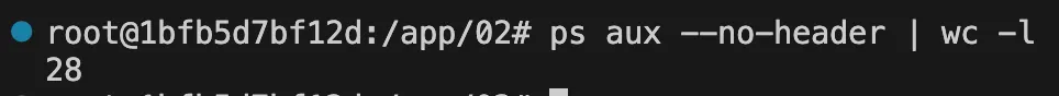 ps 명령어에 --no-header 옵션을 추가하면 헤더를 제외한 프로세스 목록을 출력할 수 있다. 이를 wc -l 명령어와 결합하여 현재 시스템의 프로세스 개수를 조사할 수 있다.