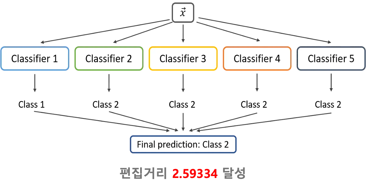 최종적으로 편집거리 2.59를 기록하고 Kaggle 대회에서 8팀 중 1위를 차지