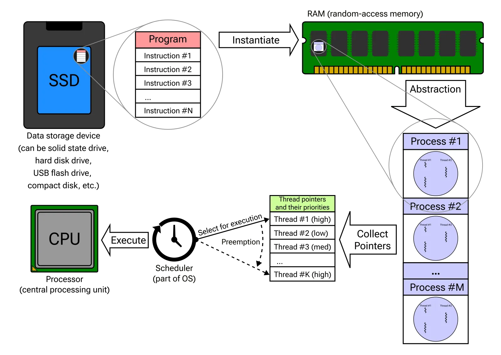 P0, P1, P2 세 가지 프로세스가 존재하면, 타임 슬라이스 단위로 CPU가 순환하며 각 프로세스를 처리