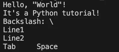 특수 문자를 출력할 때는 문자열 안에서 이스케이프 시퀀스를 사용하거나, 원시 문자열을 활용할 수 있다. 아래에서 각 방법의 세부 사항을 살펴보자.